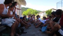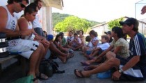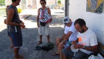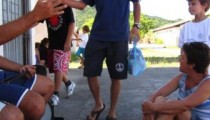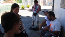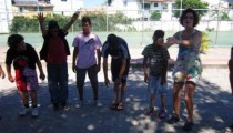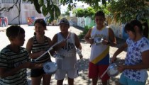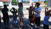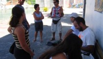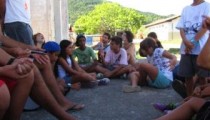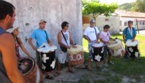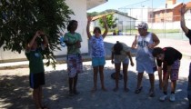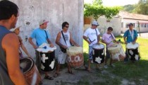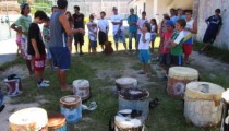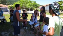 Nesta aula, após serem afinados os tamborins, tivemos uma conversa inicial, combinando como seria nossa manhã. Na oficina de canto, por meio de brincadeiras, aquecemos nossas vozes e cantamos um pouquinho de música do boi. Depois, os membros do grupo foram para oficinas separadas. Uniram-se, de um lado, bumbos, caixas e repiques, de outro lado, os tamborins. O Rafinha pegou o violão. O Chico, por sua vez, de olho nos bichos, na criançada, sempre ligado, não deixava passar nada. No final, tocamos todos juntos e voltamos a conversar um pouquinho sobre tudo que havia acontecido, o que tinha dado certo, o que não…
